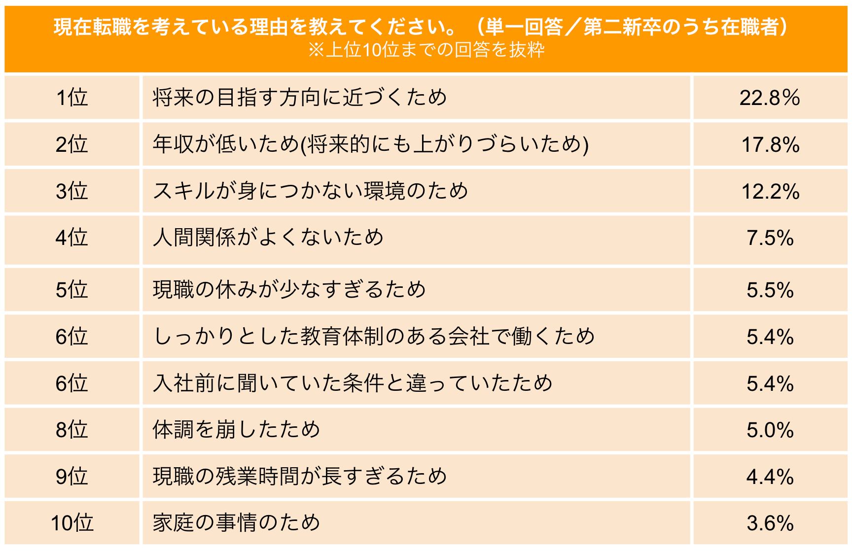 Q8.現在転職を考えている一番の理由を教えてください。※第二新卒(在職中)<単一回答>
