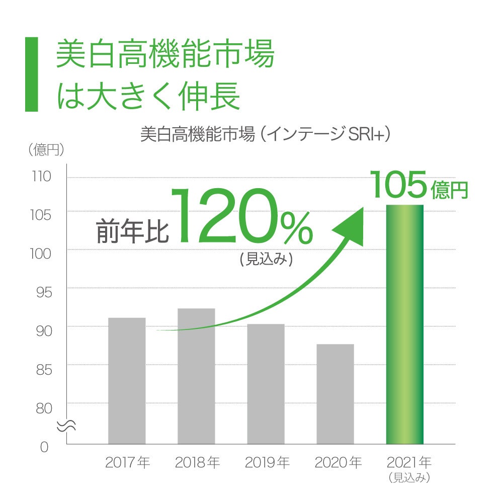 インテージSRI+によると、近年の美白高機能歯みがき市場は拡大傾向にあり、2021年度は前年比120%の見込みと大きく伸長しています。また、2021年度上期のサンギは同セグメントで44%とトップシェアを独走中です。今回のリニューアルにあたり、更なるシェア獲得を目指し、ユーザーからの自社アンケートに着目しました。アパガードを購入した理由の1位は想定通り「美白」で約80%、口の中の気になる症状として「口臭」と回答した方が約40%にも上りました。