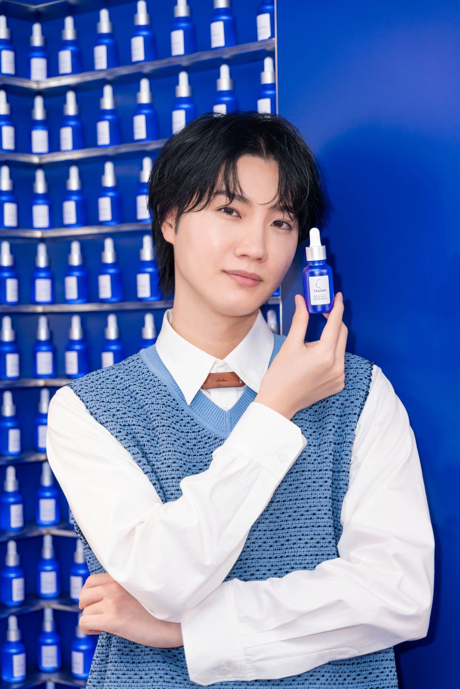 『洗顔後になじませるだけなので普段のスキンケアにも取り入れやすく、テクスチャーもさらっとしていて、一緒に使うアイテムの邪魔をしないのも良いですよね。』と語る、桜田通さん。