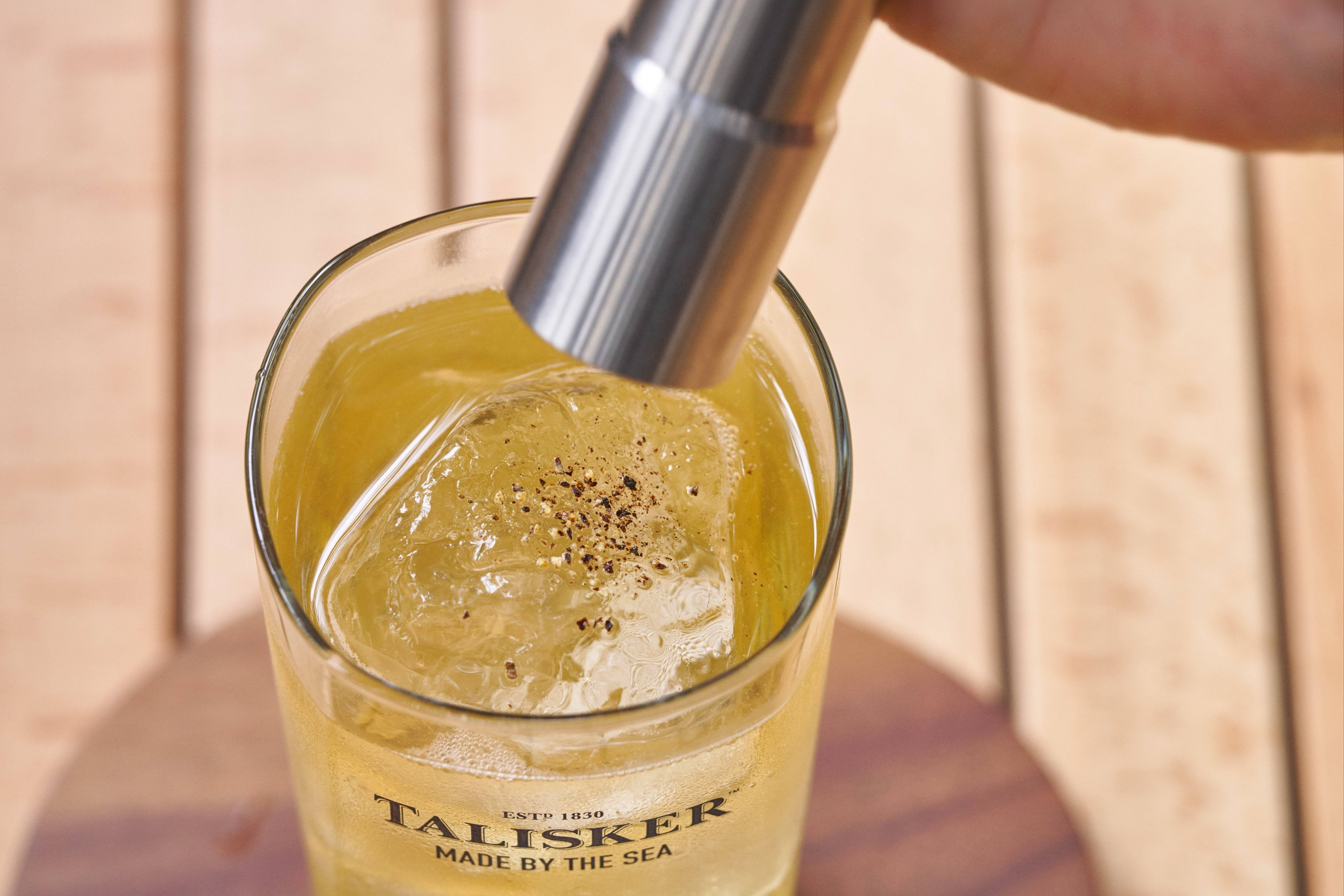 タリスカーのハイボールに黒胡椒をオントップして作る、「タリスカー スパイシーハイボール」は、タリスカーがもつ特徴を更に際立たせ、香ばしくローストした肉料理との相性は抜群です。
