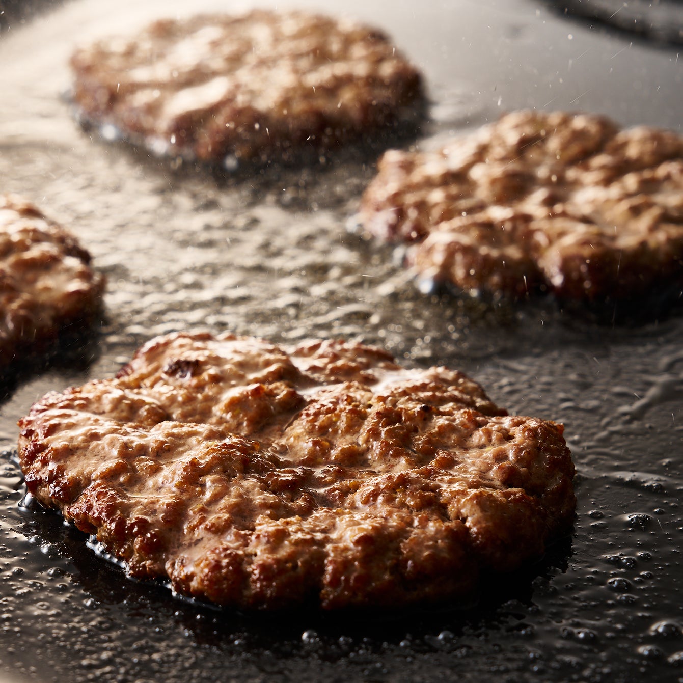 手でこねて、焼き上げたこだわりの牛肉100%のビーフパティです。