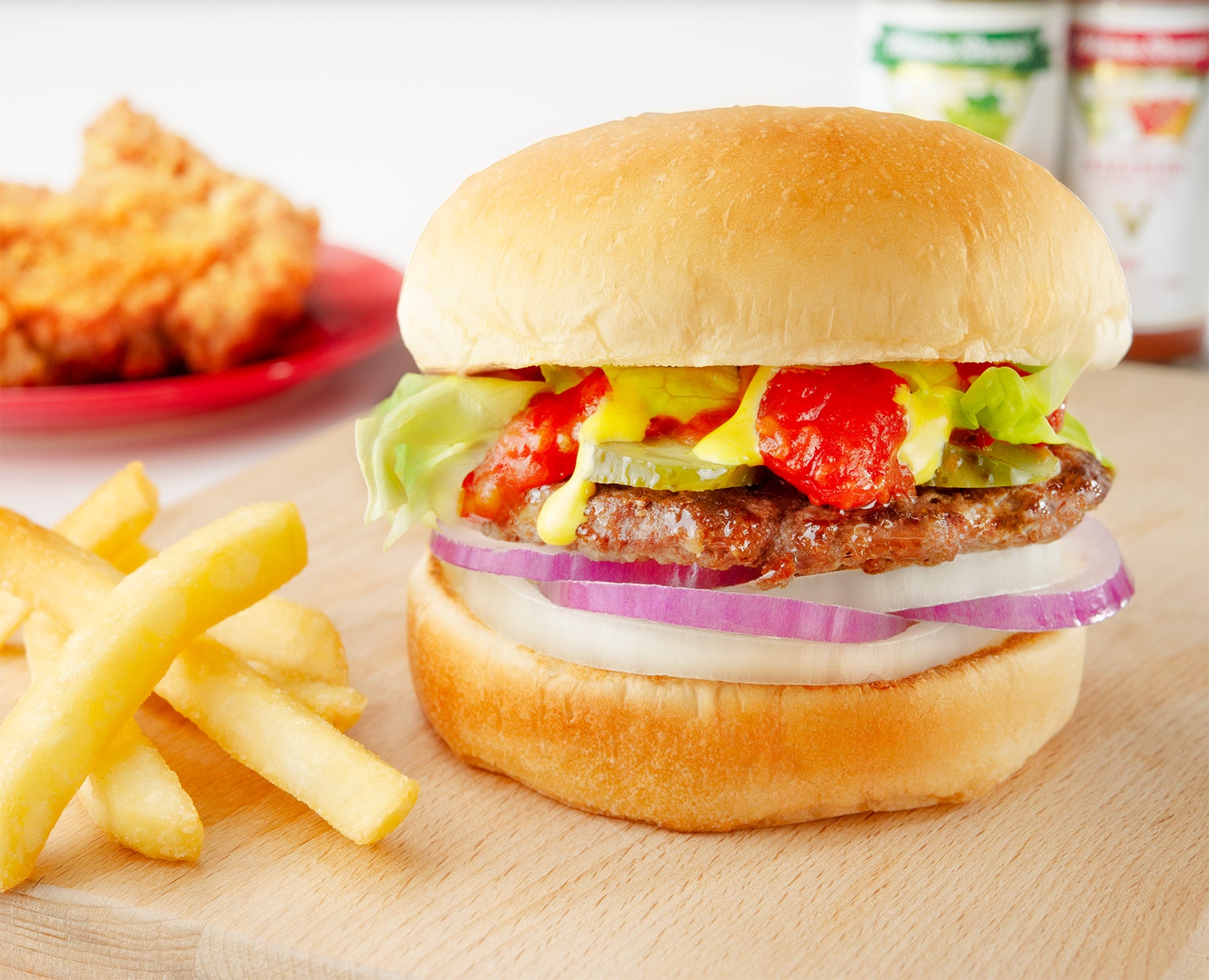 新鮮野菜と一緒に食べることでビーフの旨味を引き出す、食べ応えのある人気メニューです。クラフトバーガーに相性抜群の自家製レモネードやバニラシェイクと合わせてお楽しみください。