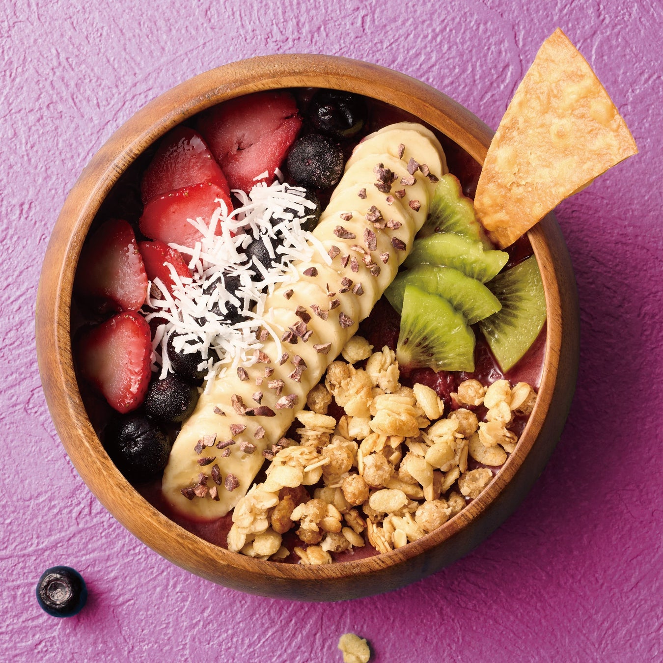 有機アサイーを使用し、トルティーヤチップスを添えてオリジナルのアクセントを