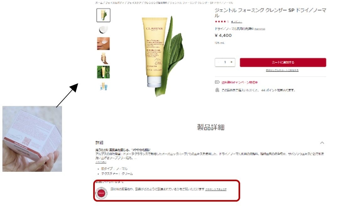 クラランス T.R.U.S.T. では、QR コードを通じて、製品ページからプラットフォームにアクセスできます。