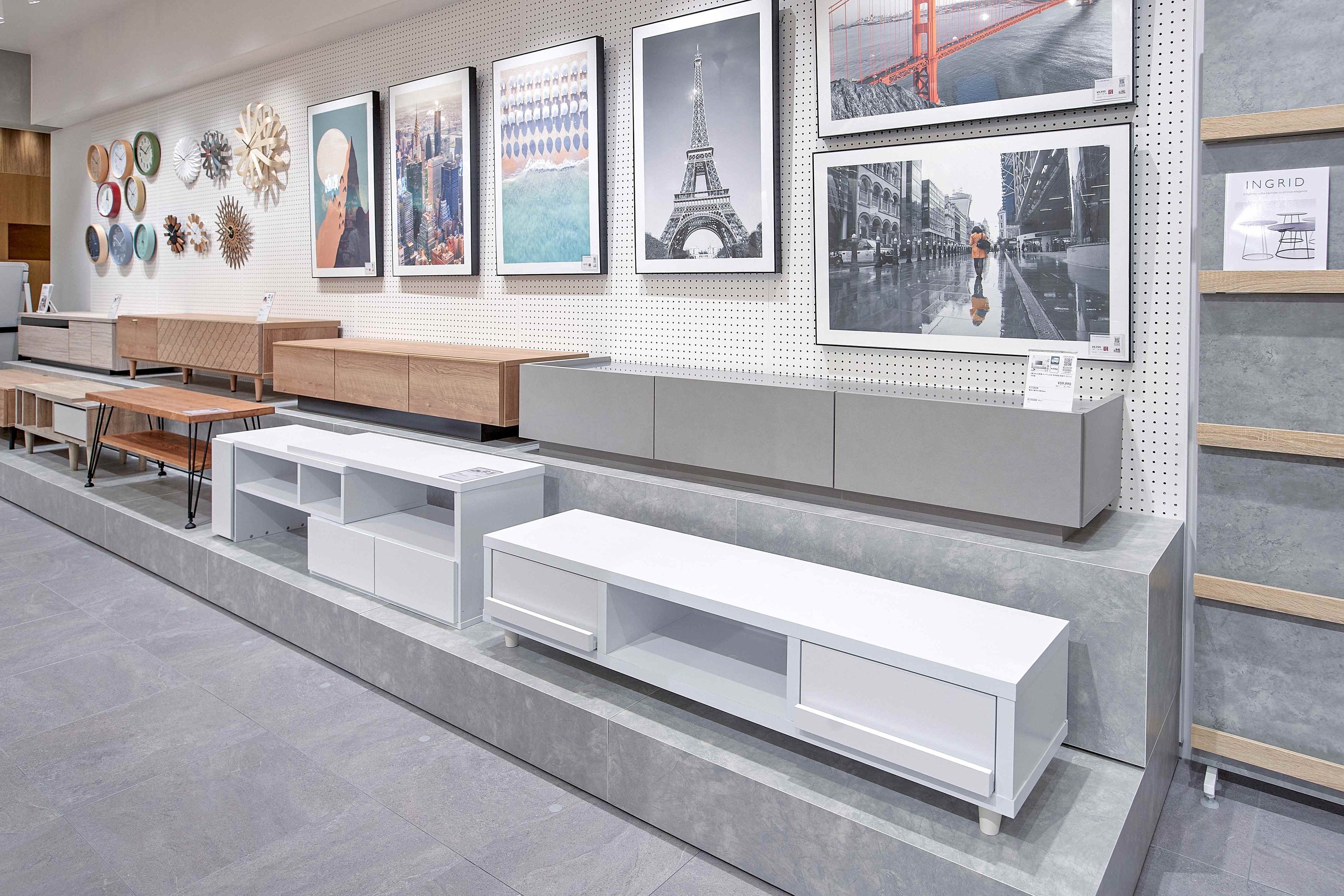 オープン初日は開店前から多くのお客様にご来店いただき、大行列が…!店内にはテレビ台やソファ、雑貨などを含め約500点のアイテムが展示されています。店内は終日、大賑わいで、ご家族でアイテムを手に取ったり、お気に入りのアイテムを写真に収めたりしている方も多くいらっしゃいました。