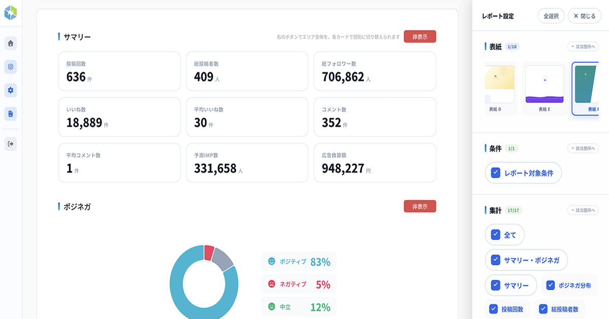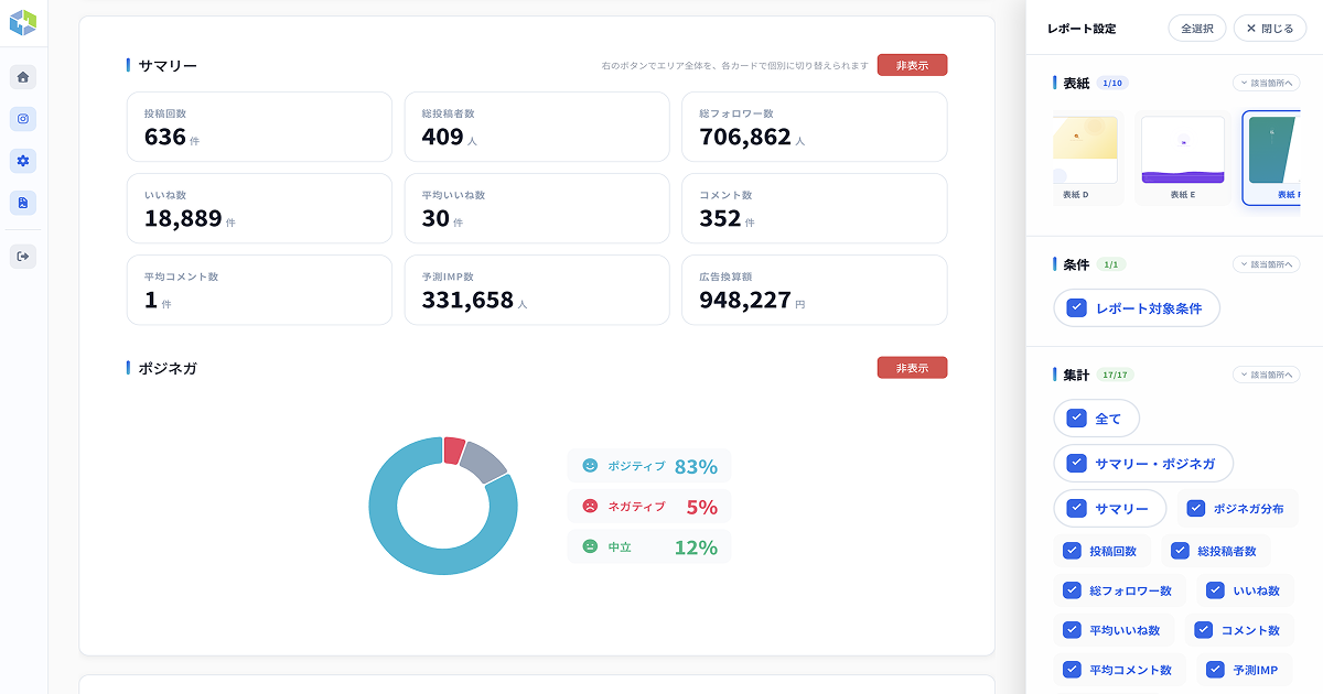 競合ツールのリニューアルでは「機能追加」が強調されることが多い中、Social Reportは逆の判断をしました。「代理店・マーケターが実務で本当に使う機能だけ」を基準に設計し、画面の複雑さの原因となっていた機能の整理・統合を行っています。「多機能であること」よりも「迷わず使えること」を選びました。