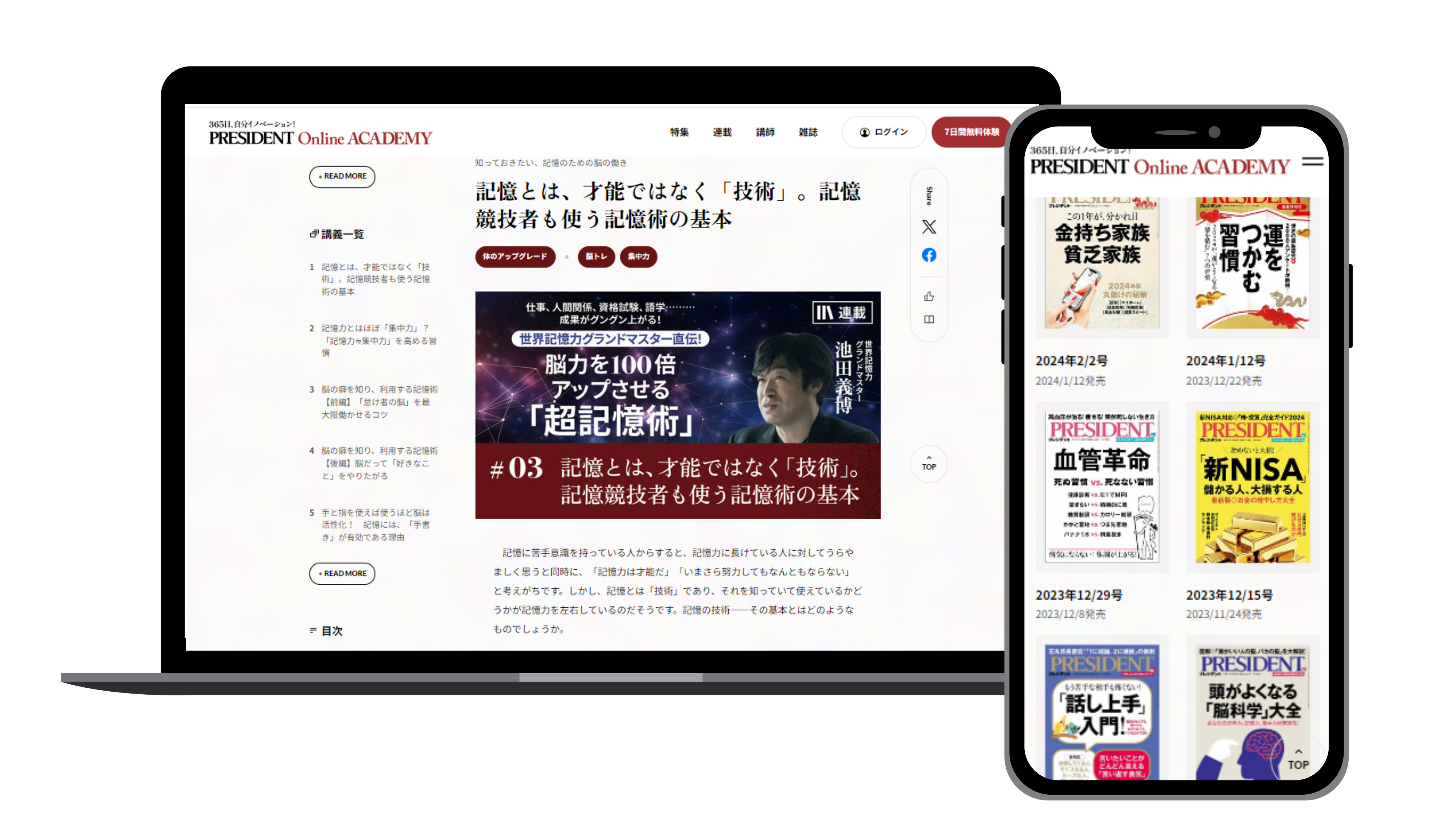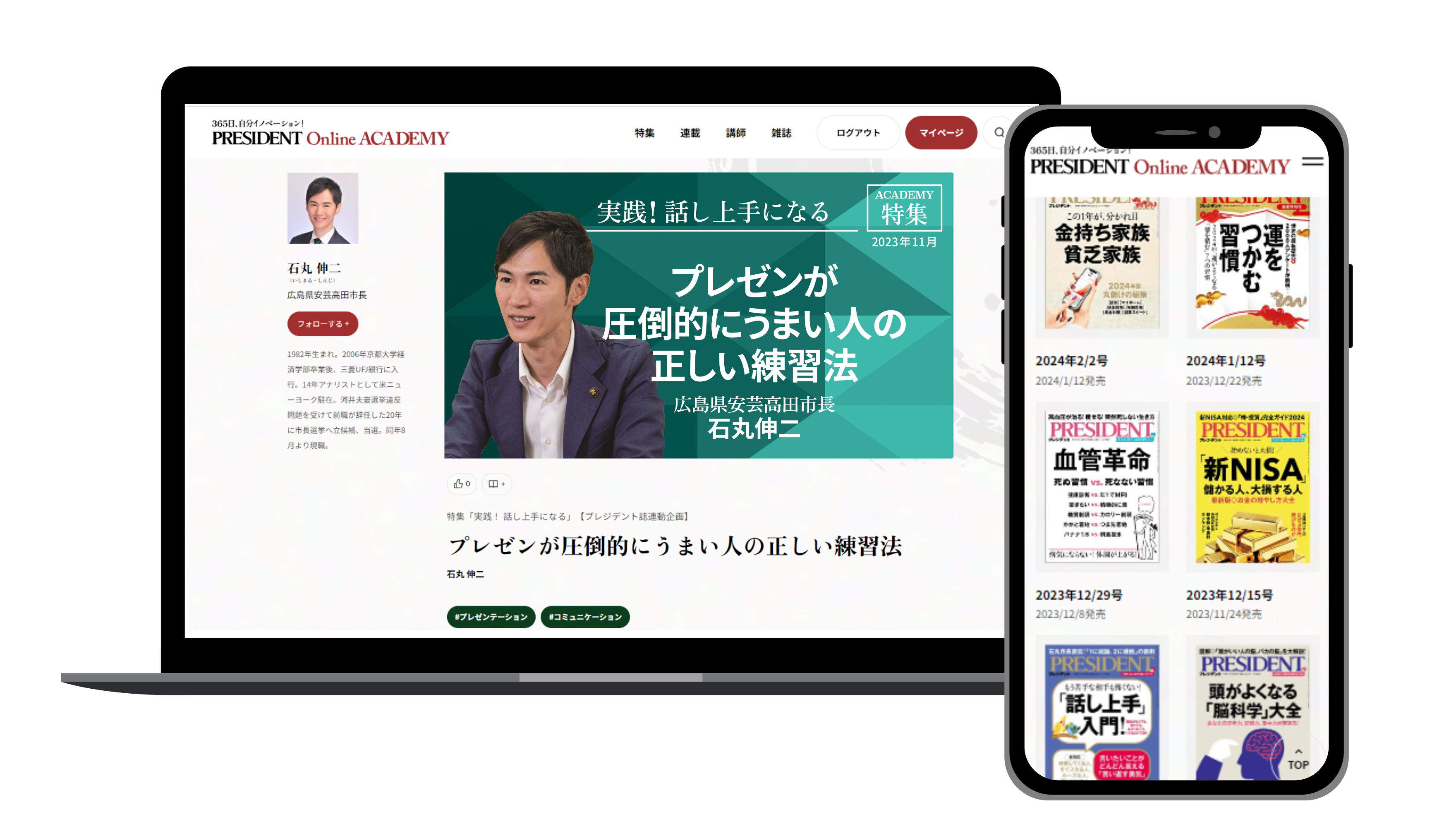 最初の3か月間、月額99円でここだけのオリジナルコンテンツ+雑誌「PRESIDENT」が見放題!