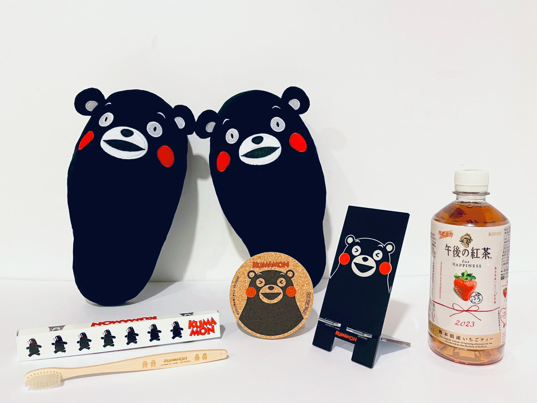 ご宿泊いただいた方には特典として、「スリッパ」「コルクコースター」「アクリルスマホスタンド」「竹製ハブラシ」をご用意いたします。さらに、「キリン 午後の紅茶 for HAPPINESS 熊本県産いちごティー(500ml)」もプレゼントいたします。