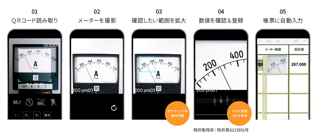 ToruMeter™ は、回転式および7セグ表示で数値を表す「デジタルメーター」および丸形タイプのアナログメーター(圧力計や連成計、真空計、温度計など)の数値読取に対応してきましたが、今般、電流計や電圧計などに利用されている「角型タイプ」のアナログメーターにも対応可能となりました。角型タイプのアナログメーターの特徴でもある斜め表示の数字の読取りに対応するので、角型タイプだけでなく、数字が斜めに表示されている丸型タイプのアナログメーターも読み取れるようになります。