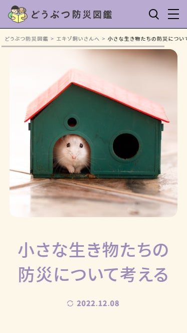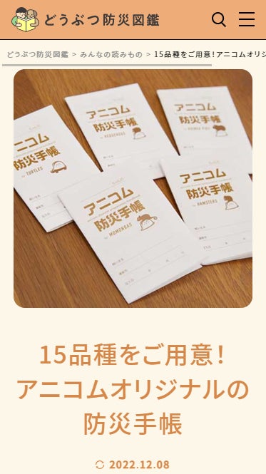 ペット保険シェアNo.1※1のアニコム損害保険株式会社(代表取締役 野田真吾、以下 アニコム)は、2022年12月8日、ペット防災専門の情報サイト『どうぶつ防災図鑑』をオープンしましたのでお知らせいたします。