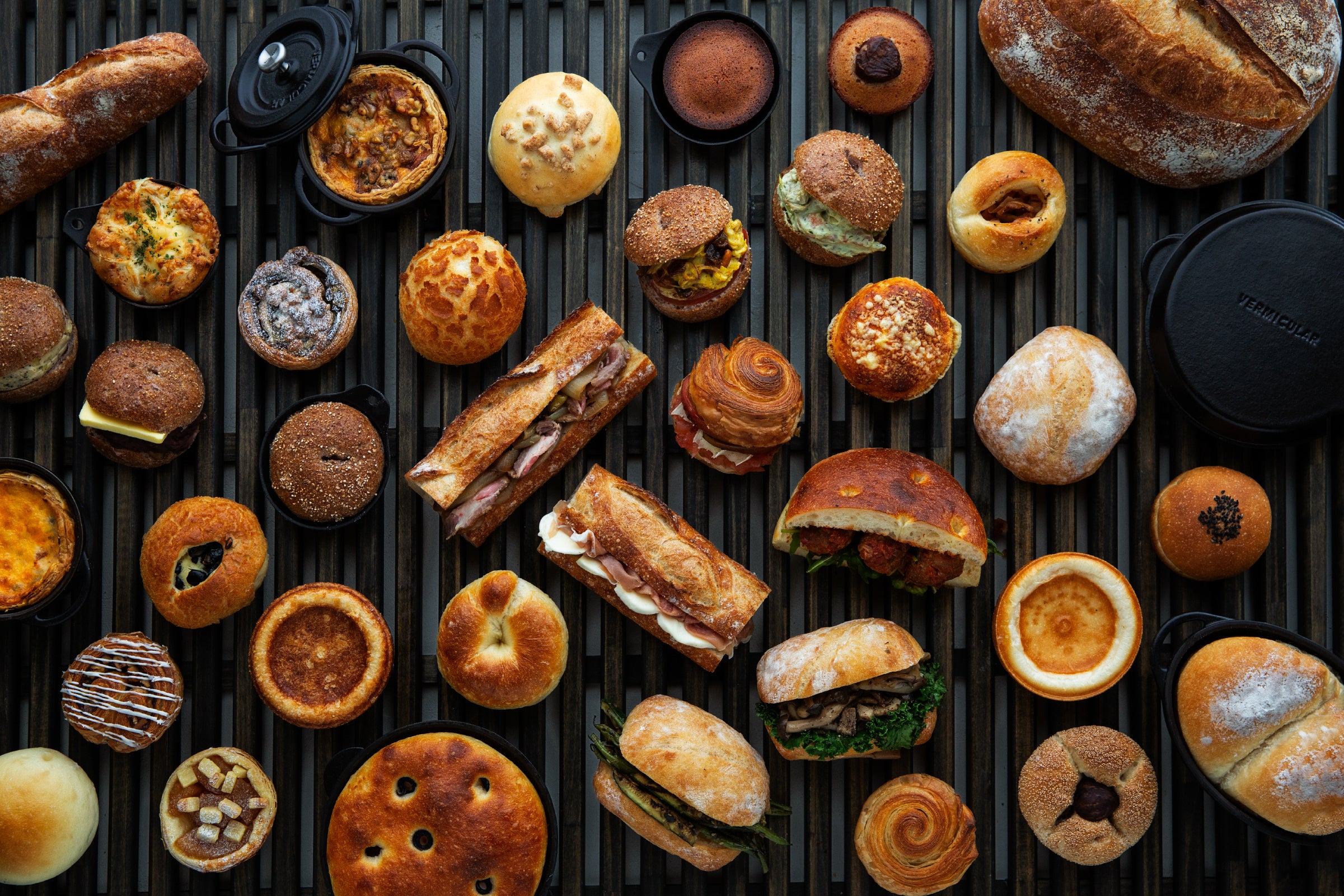 パン窯にバーミキュラ特製の天板を新たに導入し、パンのバリエーションが豊富に!自家製バケットやフォカッチャにバーミキュラで香ばしく焼いた野菜やジューシーなお肉を挟んだサンドウィッチが新発売!イートインでもテイクアウトでもお楽しみください。