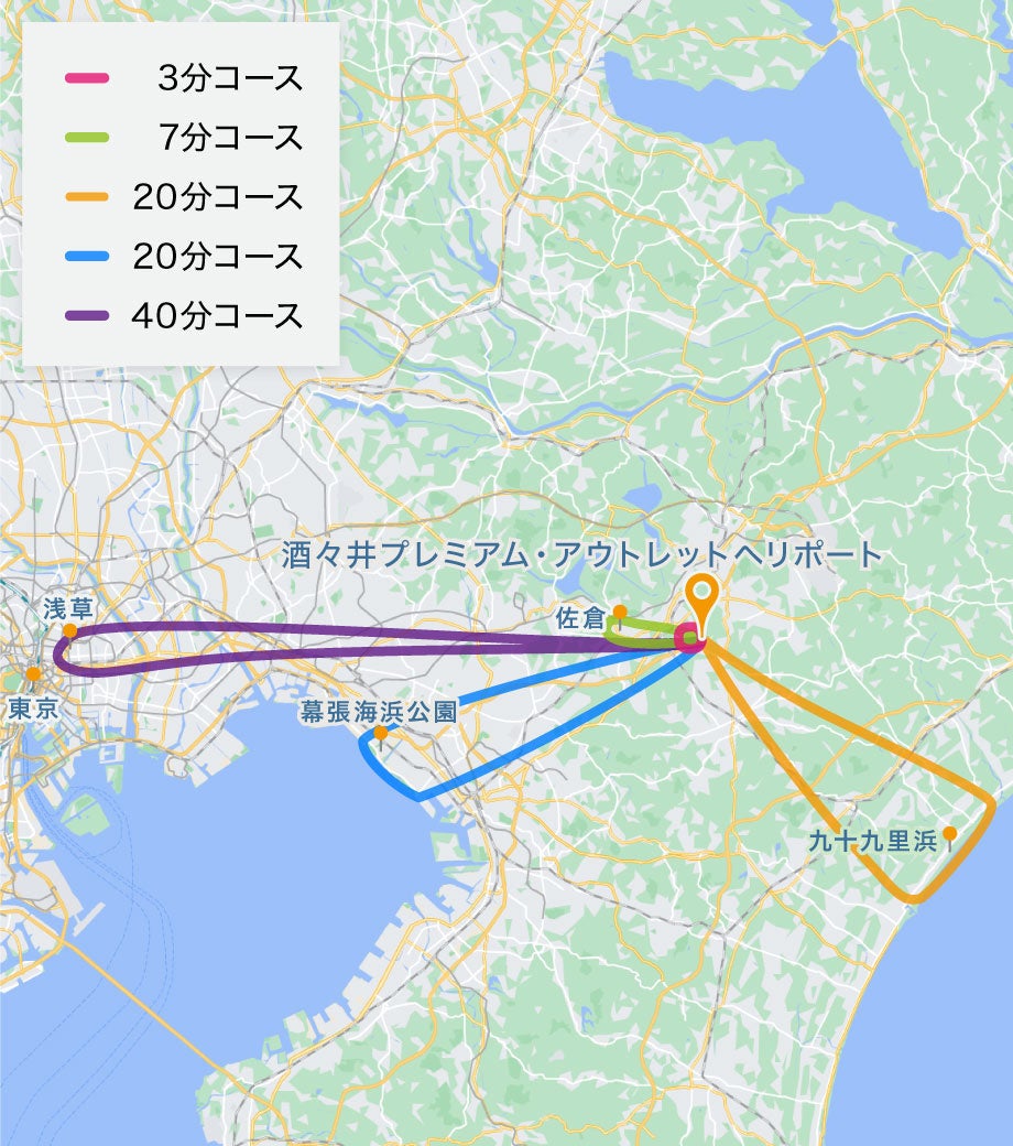 | 九十九里コース | 20分 | ¥19,800 | 酒々井プレミアム・アウトレット、九十九里浜 |