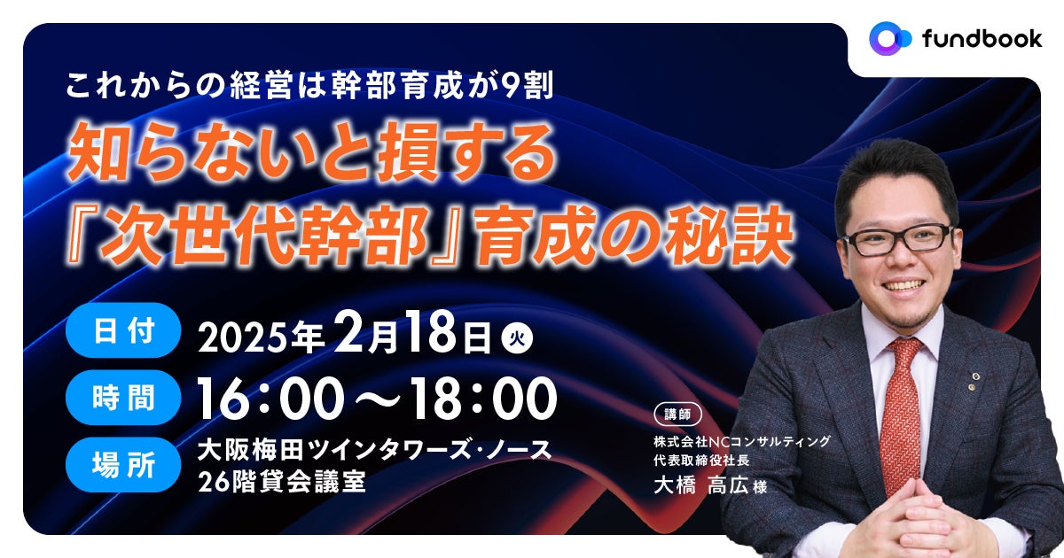 M&A仲介を行う株式会社fundbook(本社:東京都港区、代表取締役: 森山智樹・渡邊和久、読み:ファンドブック、以下「当社」)は、人事面の経営課題解決に向けた無料セミナーを2025年2月18日(火)に開催いたします。