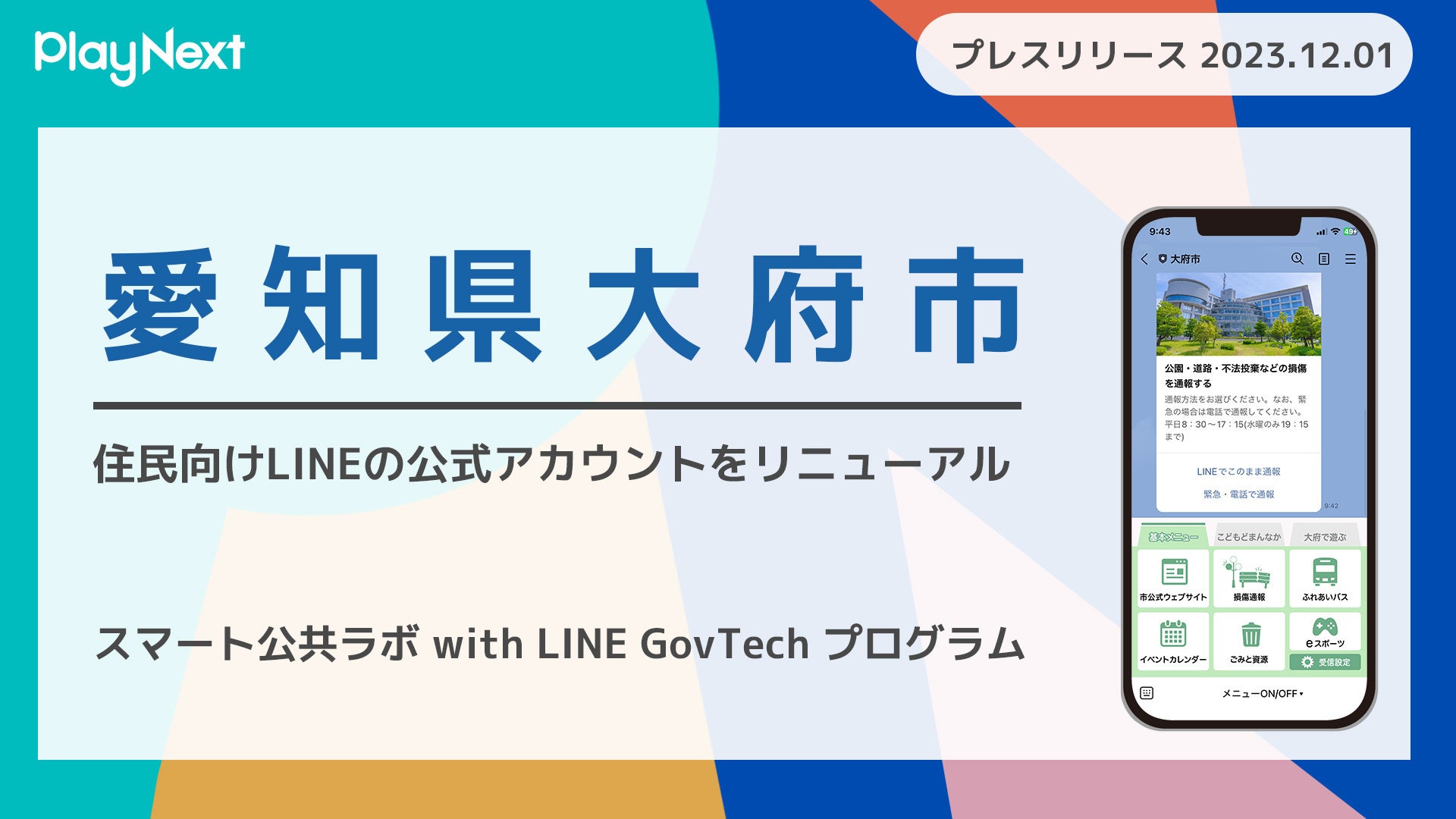 愛知県大府市が住民向けLINE公式アカウントをリニューアル!プレイネクストラボ株式会社がシステム提供と構築を支援