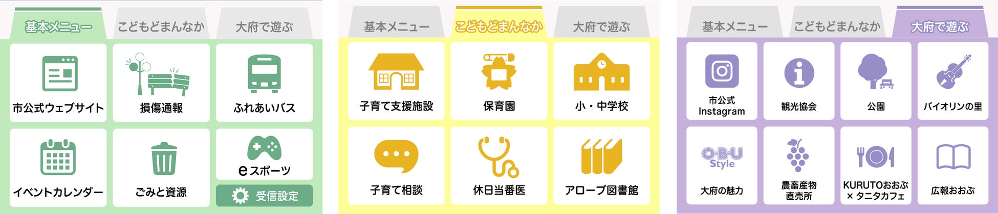 今回のリニューアルではメニューをタブ化し、より多くの情報を提供することが可能になりました。また住民のニーズに沿った配信を可能にする「セグメント配信機能」の導入や、公園や道路、不法投棄などの情報を報告できる「通報機能」を導入し、住民からの情報提供も可能となりました。