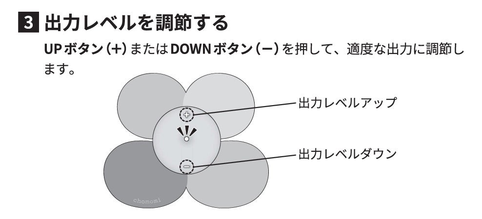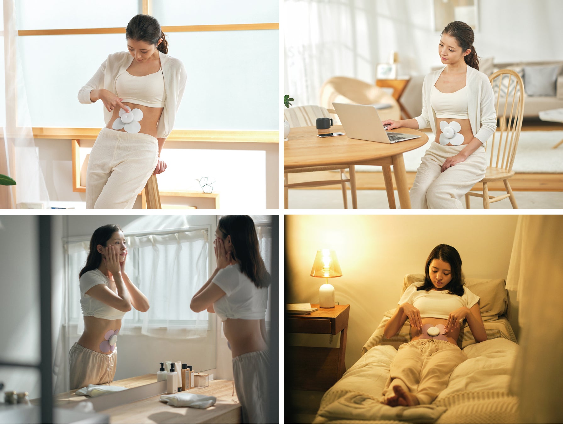 今回開発した「chomomi」はこの腸もみトリートメントを行うサロン施術を研究し、4つの電極シートで再現したガジェット。
