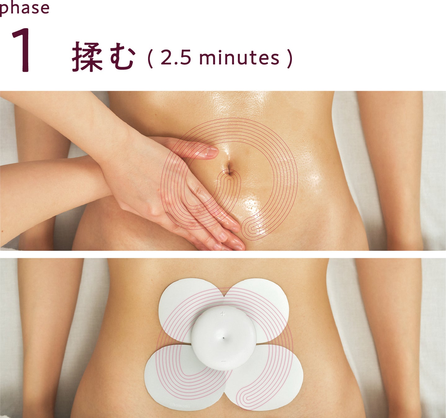 揉む、押す、流すというサロンで実施している流れで腸に刺激をしてくれています。腸はリラックスしている時に動きやすいので、痛い刺激ではなく心地よい刺激に調整できるのが人の手による施術に近いものになっています。