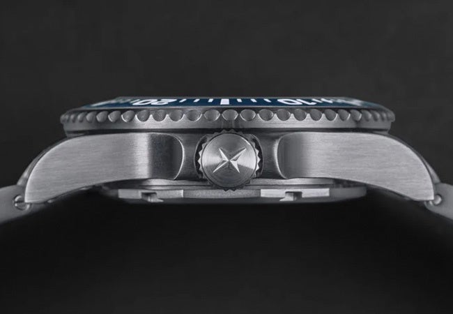 また、あえて従来の50気圧防水から30気圧防水に機能を抑える事により、ケース厚を従前のモデルより約2mm薄い12.8mmとし、装着感を大きく向上させています。