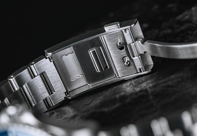 ブレスバックルには好評な「ウェイブスライドシステム」を採用、サイズの微調整も思うままです。