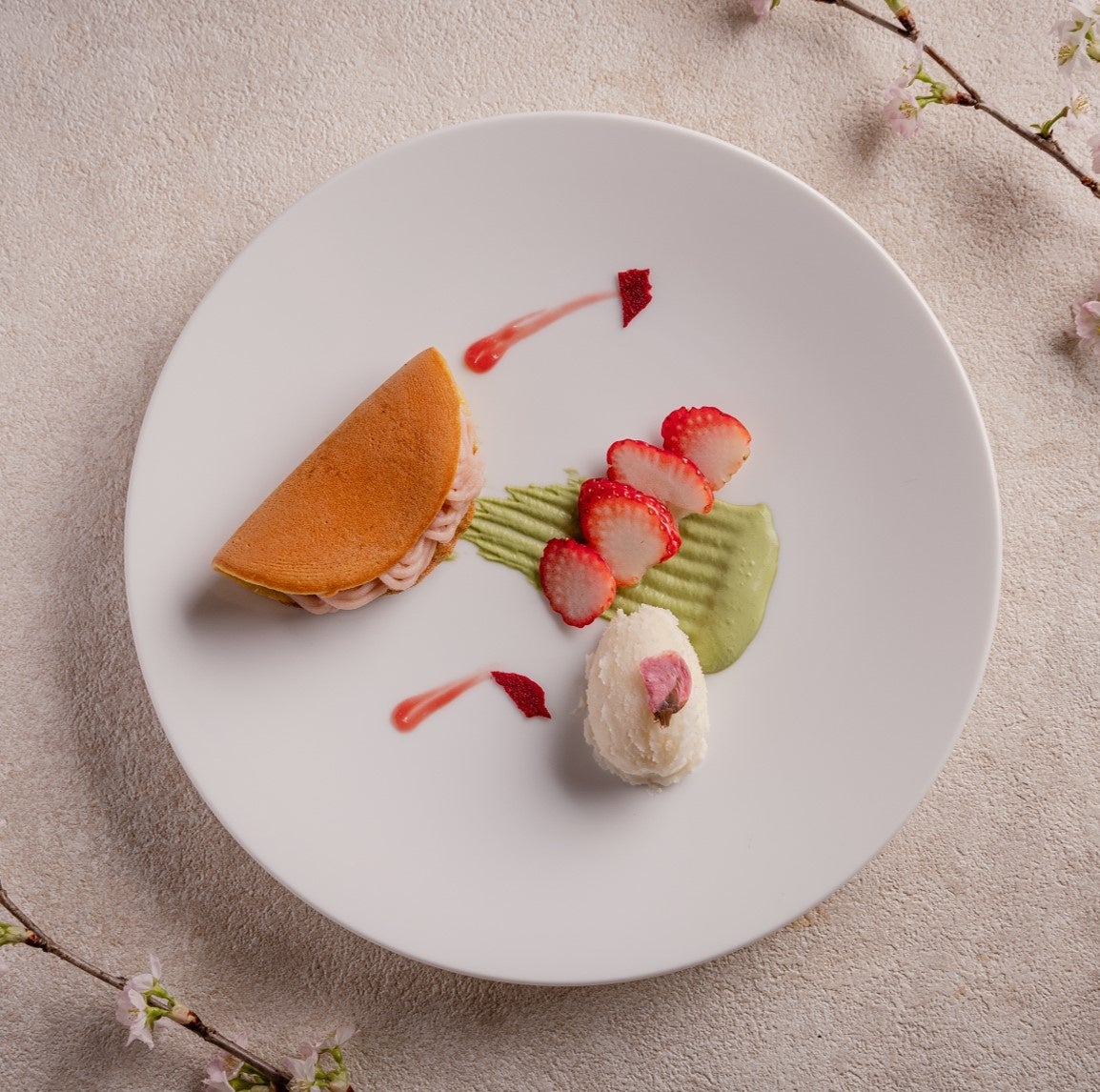 今年の季節限定コース「SAKURA Course」は、昆布締めの桜鯛を使った「桜鯛のカルパッチョ、小海老と天豆」や桜エビをパン粉に混ぜ込んで醤油バターソースで召し上がっていただく「鰆の香草パン粉焼き」、デザートには甘酒のアイスに店内で皮から焼き上げた「桜のどら焼き 甘酒のアイス」など春らしく桜にちなんだ料理を提供します。
