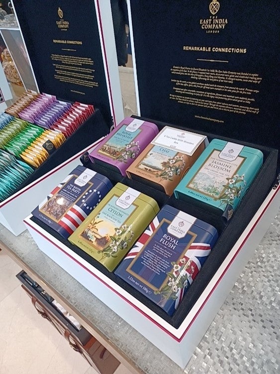 ロイヤルブルーチョコレートでは2024年1月17日(水)~2月3日(土)の間、大阪の阪急うめだ本店地下1Fの「スイーツイベント1」を皮切りにスタートし、随時販売を展開して参ります。英国・東インド会社の歴史あるオーセンティックな味わいのシグネチャーティーも6種類ほど販売を予定しています。カラフルで歴史を感じさせる素敵なキャディー缶(茶葉入り)のラインナップにはエリザベス女王もお気に入りだった紅茶も販売いたしますので、ぜひお楽しみに。