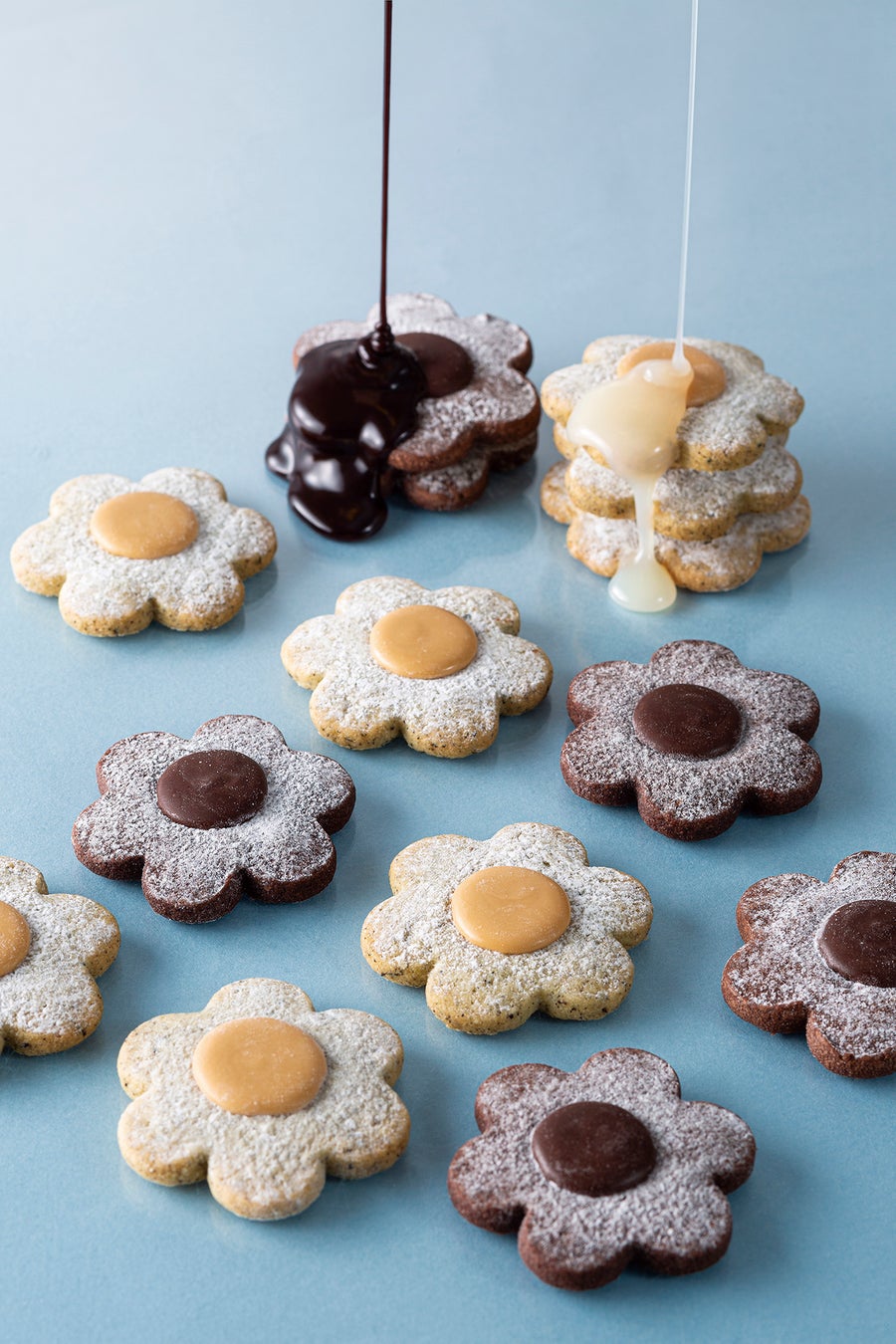 カカオクッキーにはほろりと苦い大人味の「ビターチョコ」、ティーリーフ入りのクッキーにはミルキーでコクのある「ブロンドチョコ」。しっとりと口どけやわらかなクッキーとショコラティエ厳選のチョコレートの組み合わせです。