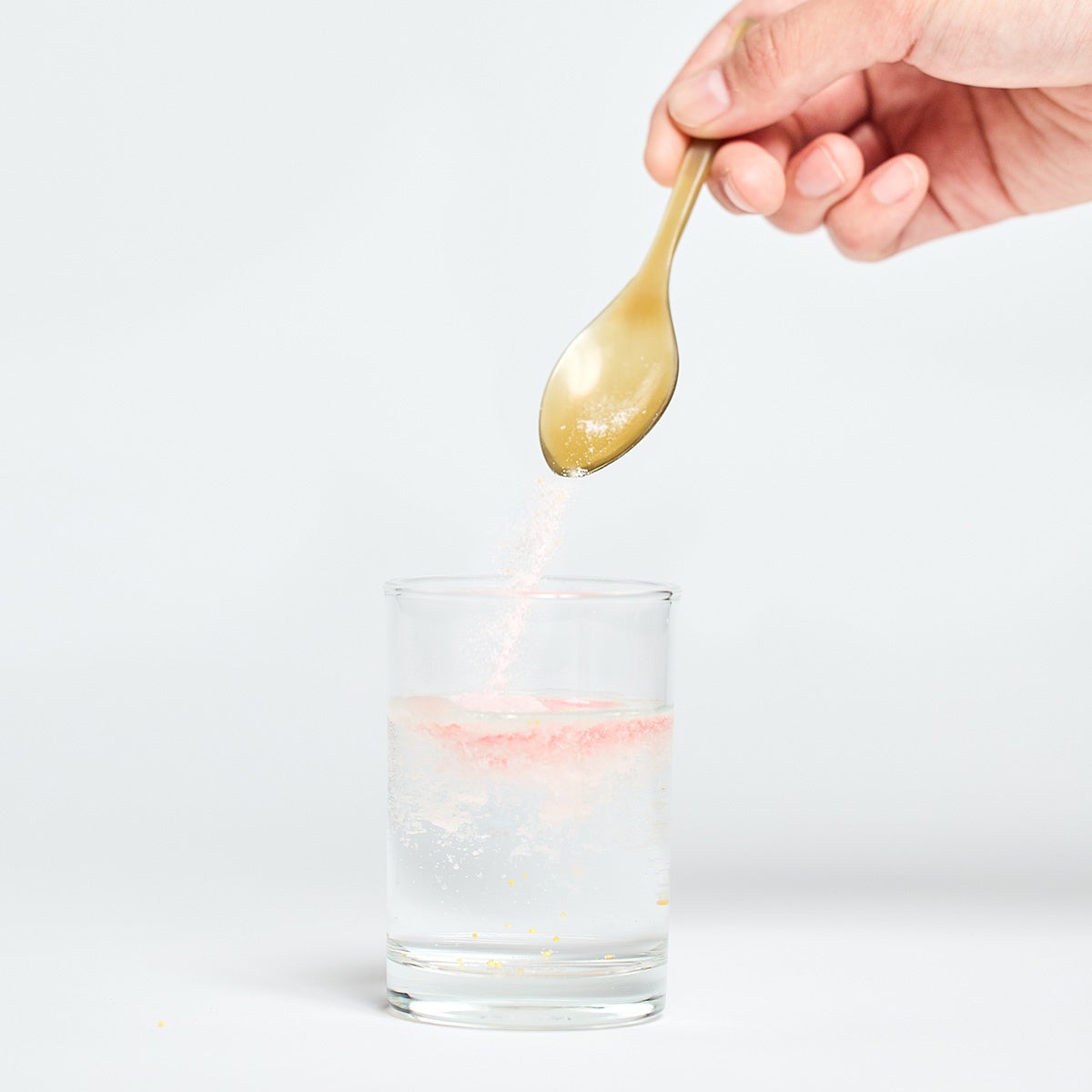 一般的なコラーゲンペプチドと比べて吸収が早いと言われている分子量500の極小コラーゲンと、美容に最適な分子量と言われるコラーゲン2000、赤ちゃんのようなぷるぷるになれると注目の卵殻膜を配合したパウダーを加えました。持ち運びに便利な顆粒タイプで、そのまま飲んでも、水に溶かしてもおいしくお召し上がりいただけます。