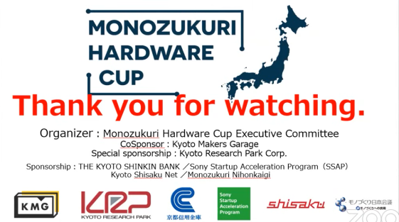 協賛:京都信用金庫、SONY STARTUP ACCELERATION PROGRAM、京都試作ネット、モノづくり日本会議