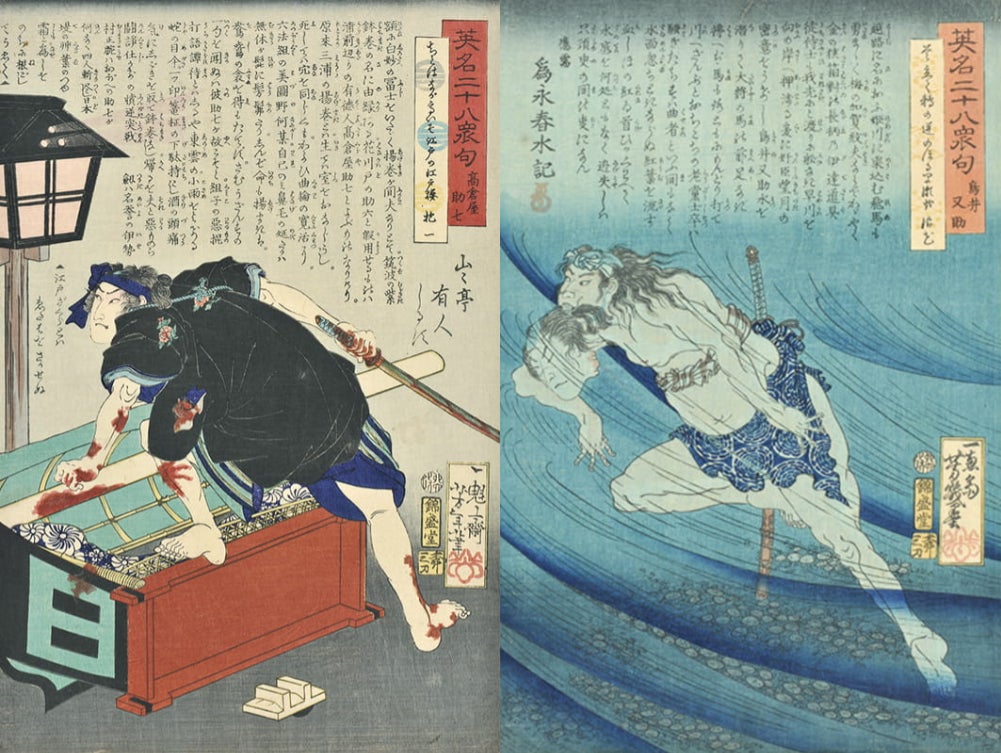 右:落合芳幾《英名二十八衆句 鳥井又助》慶応3(1867)年 西井コレクション