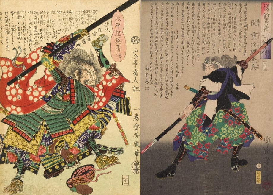 右:月岡芳年《復讐義士銘々伝》(部分) 明治元(1868)年 浅井コレクション