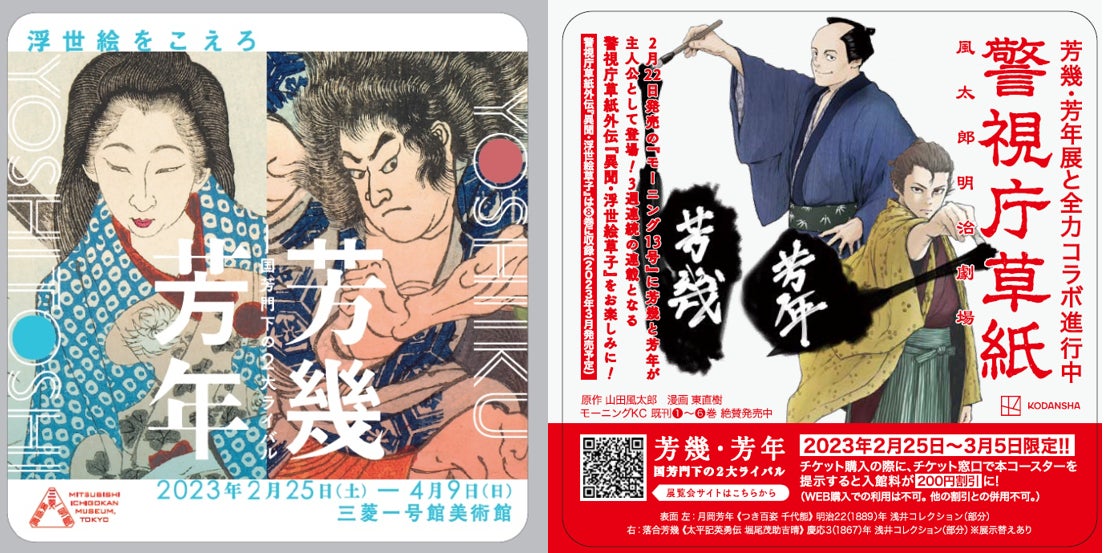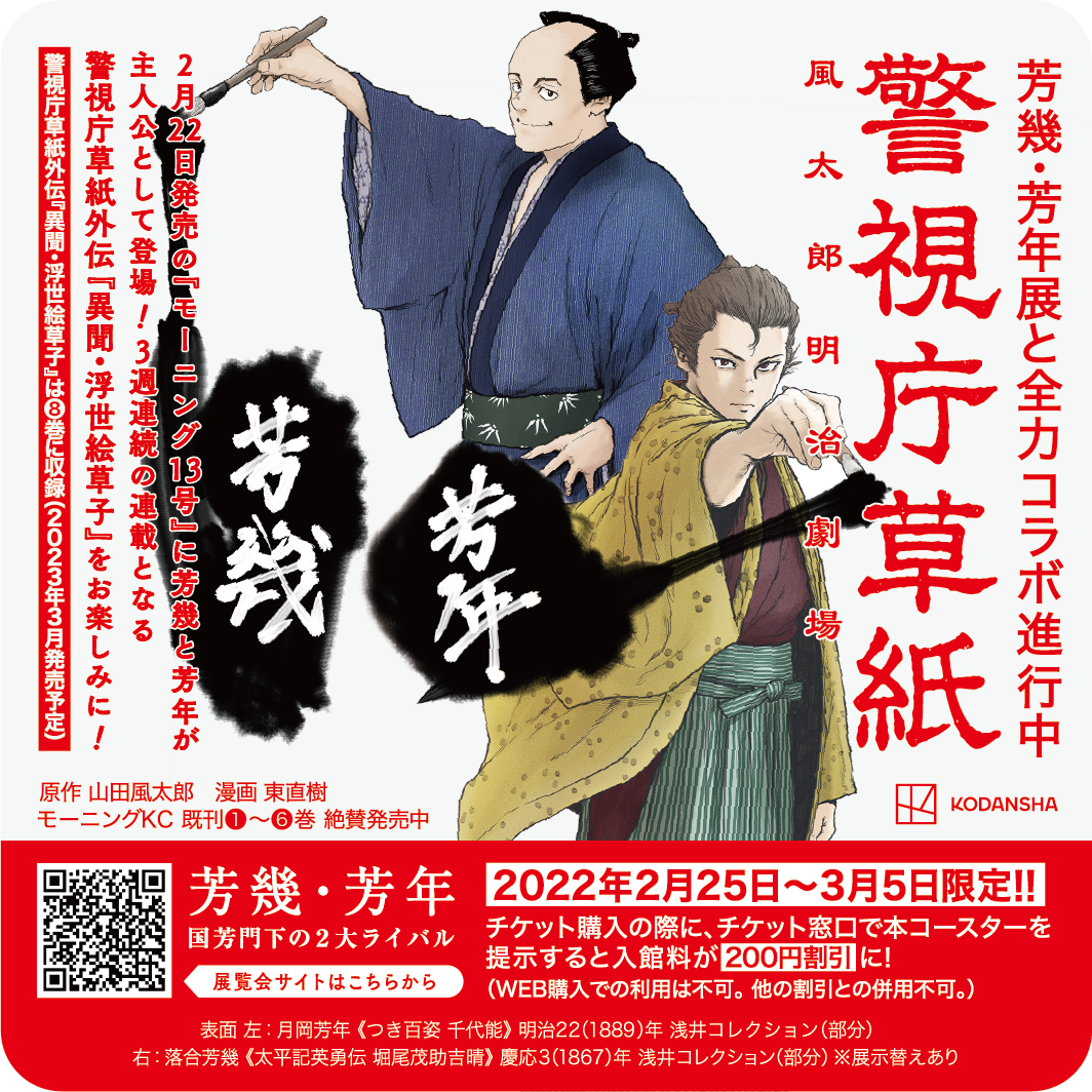 三菱一号館美術館「芳幾・芳年―国芳門下の2大ライバル」展とシンクロする、警視庁草紙外伝『異聞・浮世絵草子』が「モーニング13号」に掲載!芳幾・芳年のビジュアルが決定!