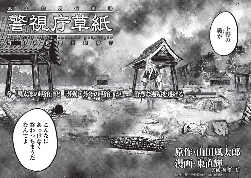 江戸と東京がまだ共存していた明治最初期に30代を迎えた芳幾と芳年。この時代は、『警視庁草紙』の舞台と重なります。本コラボレーションでは、激しく移り変わる価値観に直面した芳幾と芳年の生きざまを、同時代を舞台とした漫画、『警視庁草紙』を執筆する東直輝さんの世界観を通して迫ります。