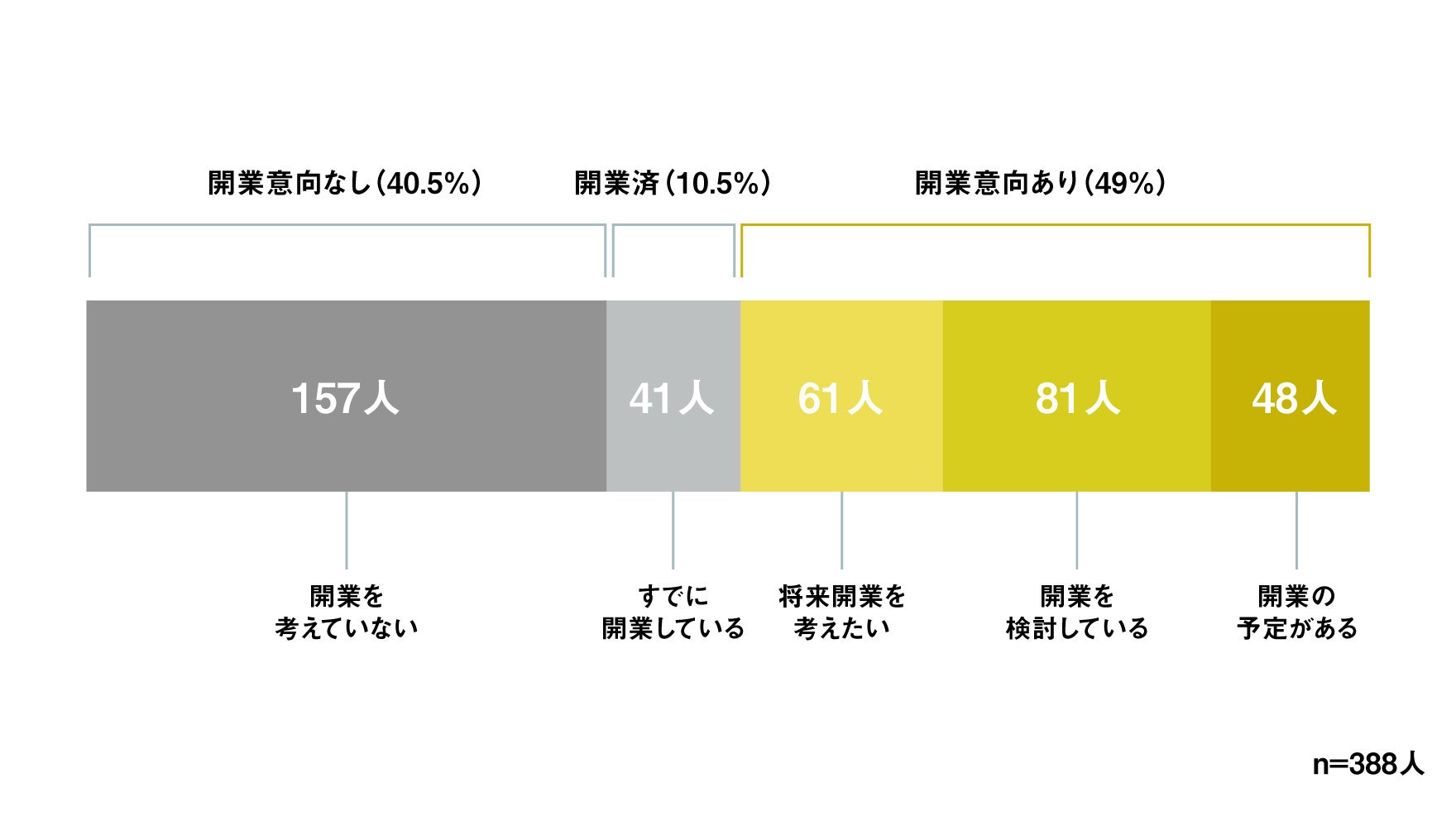 開業に対する意向を調査したところ、388人中、190人(約49%)が開業に対して前向きな意向を示しました。