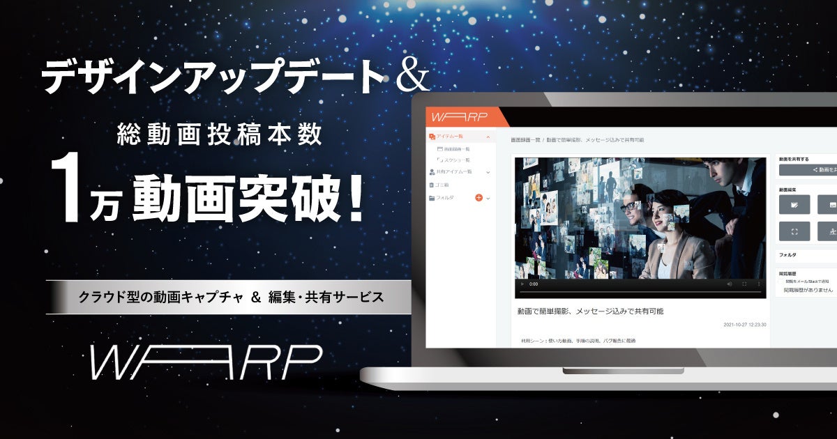 「リモートワークに欠かせない」「説明が30分→3分に短縮」など大好評!動画キャプチャ&共有サービス「WARP」の総動画投稿本数1万本突破。