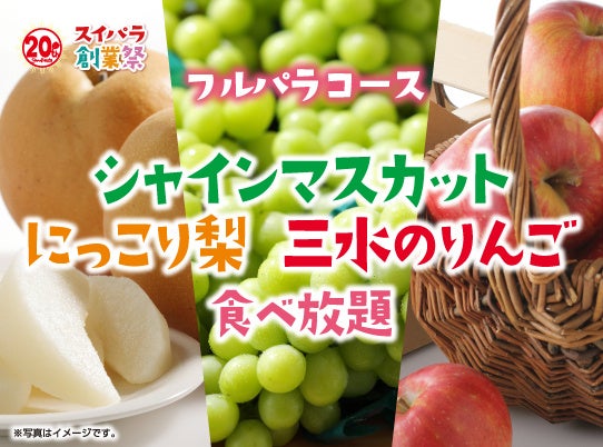 2023年11月1日(水)からのフルパラコースでは「シャインマスカット・にっこり梨・三水のりんご食べ放題」を開催いたします。