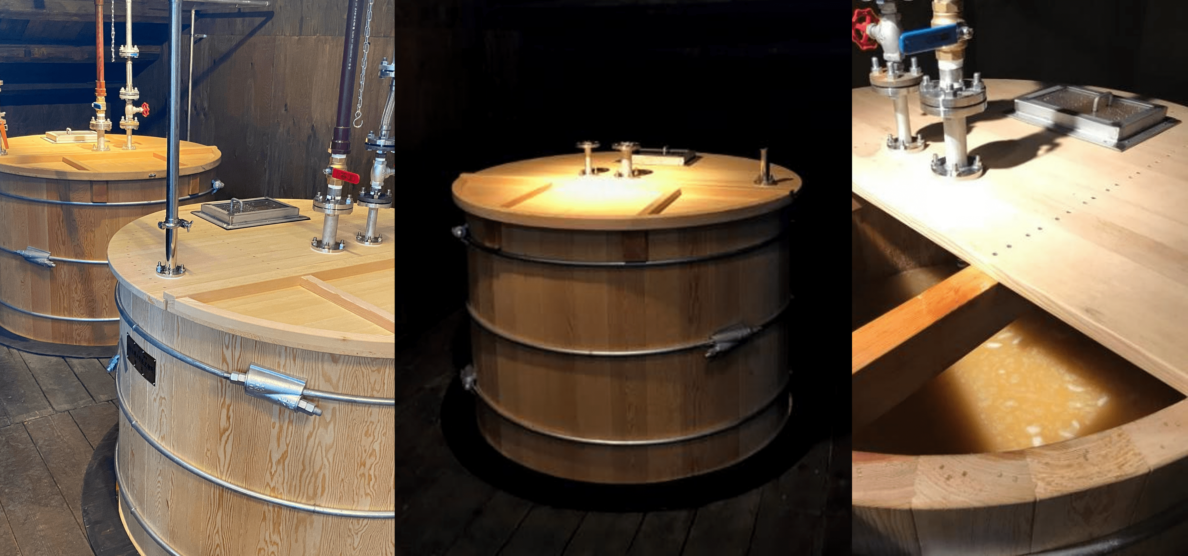 また、2020年に木製の発酵槽を導入しました。それ以前は、ホーロー製の発酵槽のみで発酵を行っていました。木槽を導入することで、ホーローでのエール酵母およびウイスキー酵母による発酵に加え、木槽に住み着く乳酸菌による乳酸発酵が加わりました。その結果、さらに複雑な香りのもろみ造りに影響をもたらします。