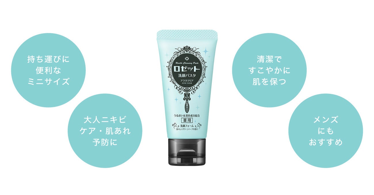 クレイシリーズで唯一のミニサイズ洗顔料「ロゼット洗顔パスタ 海泥*2スムース ミニ 30g」は、旅行などの携帯用に重宝する使い勝手の良さから、発売以来多くの皆様にご好評いただいております。今回、「他アイテムのミニサイズも欲しい」といったお客様からのご要望にお応えし、大人ニキビ対策で人気の薬用洗顔料「ロゼット洗顔パスタ アクネクリア (販売名:ロゼット洗顔パスタA)」のミニサイズを新たなラインナップとして新発売いたします。持ち運びに便利なコンパクトサイズで、旅行やジム、温泉など、さまざまなシーンでご活用いただけます。また、初めて使う方のお試し用としてもおすすめです。