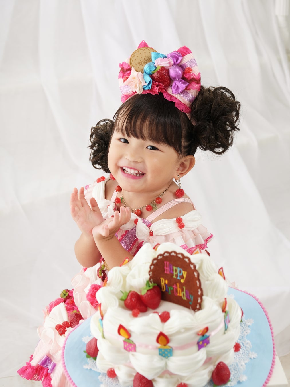 2021年当時三歳だった乃々佳さんが、「Happy Birthday to You」のメロディーにのせて、七五三メニュー「Happy Birthday七五三」の楽しさを歌で可愛らしく伝えました。初めての七五三で、華やかな着物やフリフリのドレスを着て七変化する姿は、一緒にスタジオアリスへ七五三撮影に来たような臨場感をもって楽しめる動画になっています。