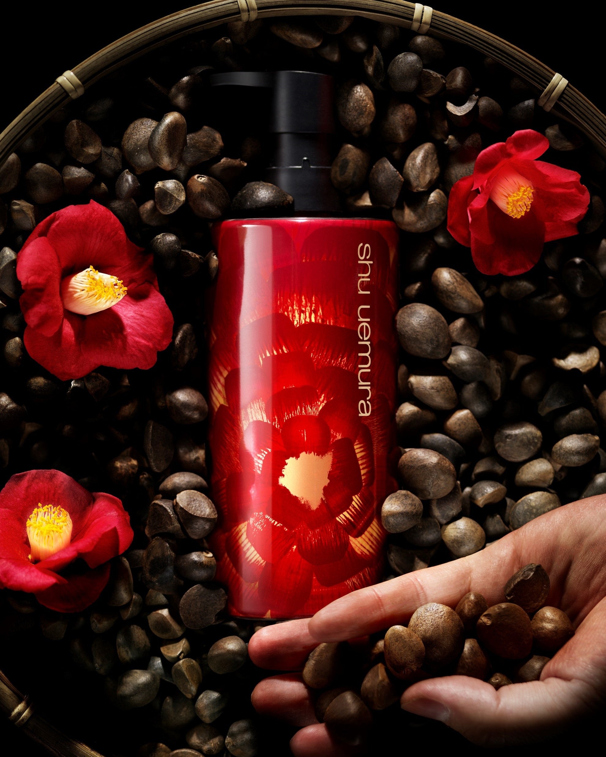 利島の椿が花開く様子からインスピレーションを受け、目にも鮮やかな美しい椿柄を施した『アルティム8∞ スブリム ビューティ クレンジング オイル』が限定チャリティーデザインボトルで登場。