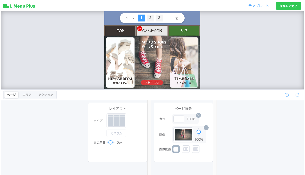色や画像を変更したり、アクションを設定するだけの直感的な操作で作成でき、公開後も好きなタイミングで修正することができます。