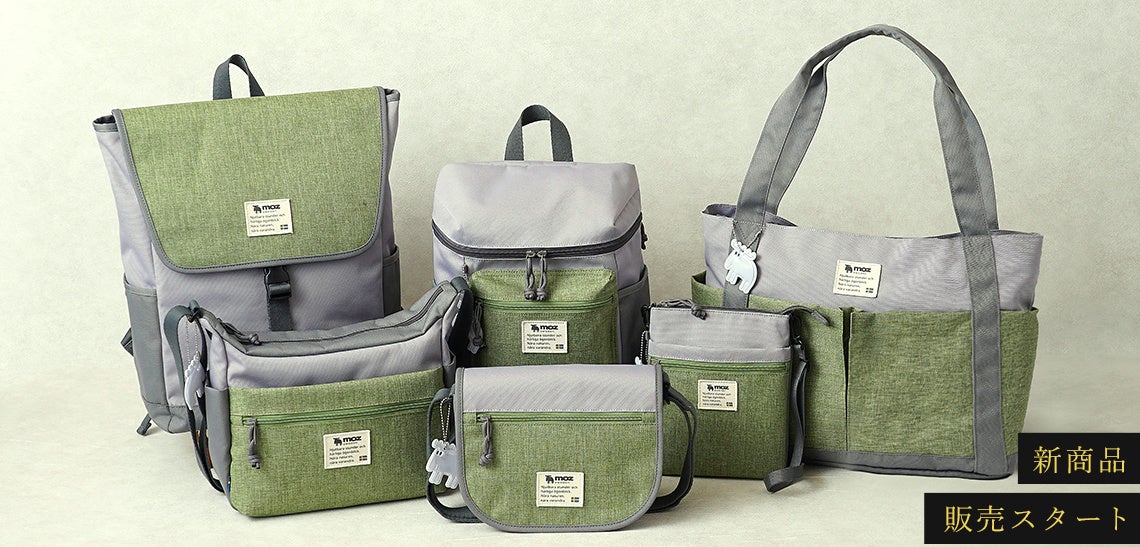 都会的で落ち着きのあるグレーと、芽吹く草木を彷彿とさせる鮮やかなグラスグリーンのコントラストは、コーディネートに程よいアクセントと洒落感をプラス。見た目の可愛さだけでなく、500mlペットボトルが横に収まる収納力や、中身の整理に便利な独自の「moz pocket(モズポケット)」など、ユーザーの「欲しい」を形にしました。