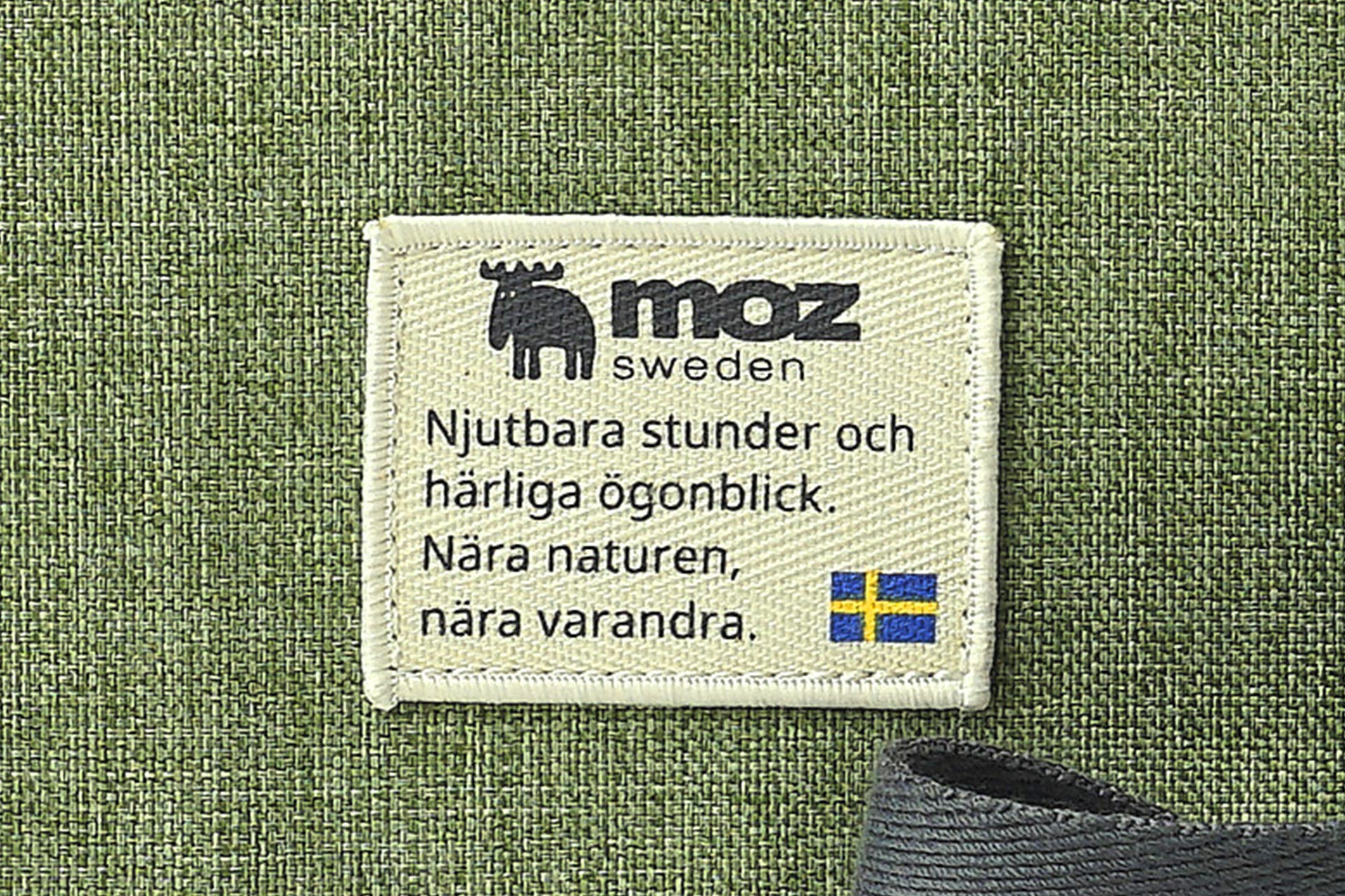 フロントに配された「moz」のブランドワッペンが、シンプルなデザインに愛らしいアクセントを添えています。