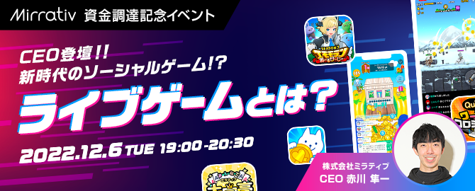 - ミラティブCEO赤川 x ライブゲームディレクターによる対談イベント開催決定