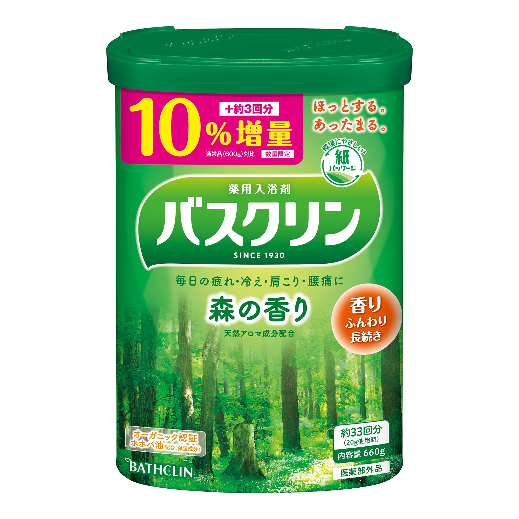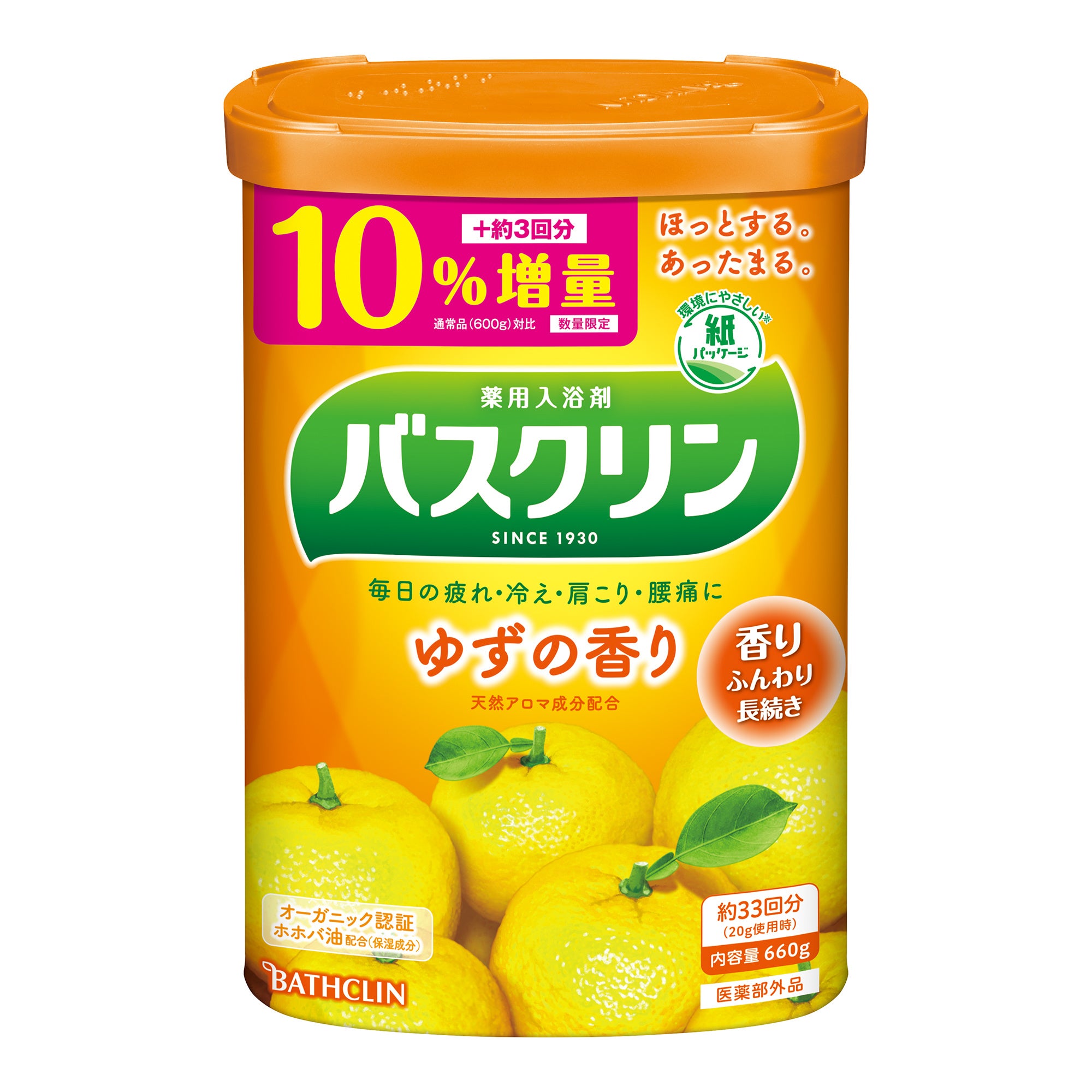 株式会社バスクリン(本社:東京都千代田区 社長:三枚堂正悟)は、90年以上にわたり、様々な時代のバスライフを通じて家族の健康をサポートしてきた「バスクリン」ブランドより、お客様の日頃のご愛顧に感謝を込めて、「バスクリン ゆずの香り」「バスクリン 森の香り」「バスクリン ピュアスキン しっとり肌」を10%増量し、8月8日(月曜日)に数量限定企画品として発売いたします。