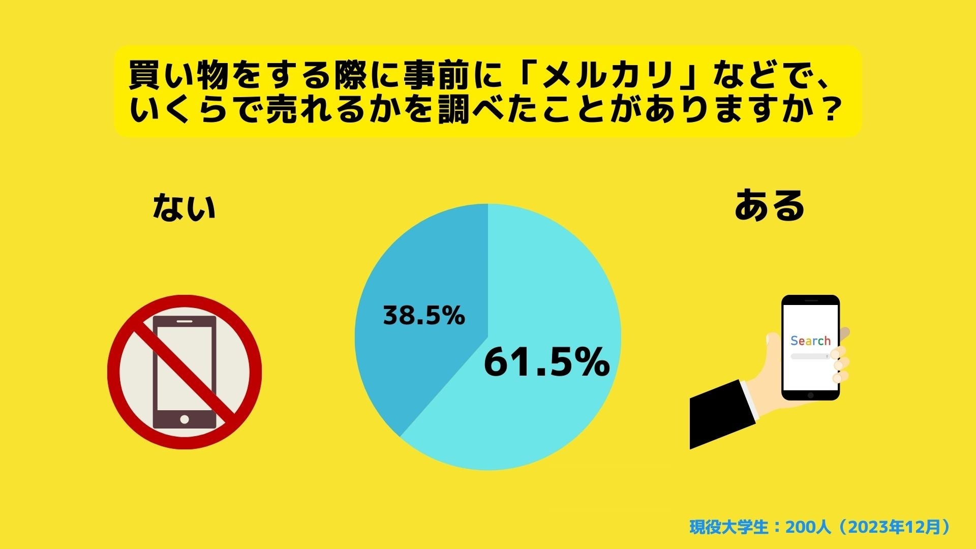 【Z世代のホンネ調査】大学生の61.5%が「商品購入前にメルカリでいくらで売れるかを調べたことがある」と回答。大学生のメルカリ利用率調査。