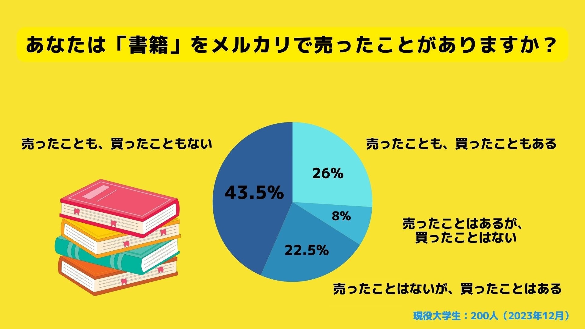 大学生の間では「書籍」が最もメルカリで売買されやすいことが判明しました。