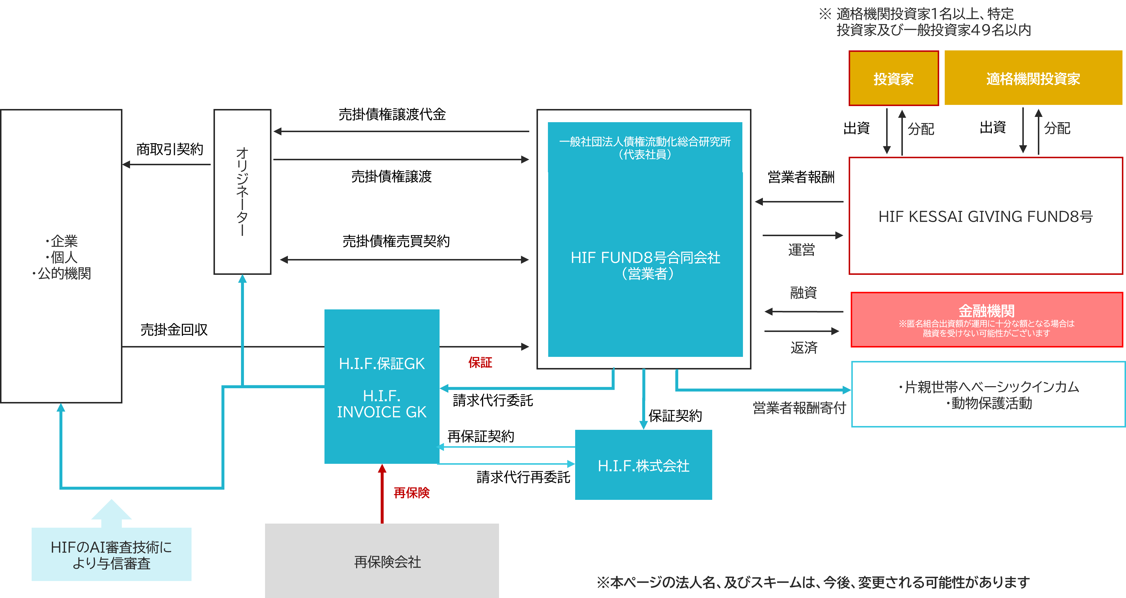 ・保証:ファンドが保有する売掛債権には、保証会社⼜はH.I.F.もしくは両方による売掛金保証が付保されております。(公的機関等に対する債権は除く)