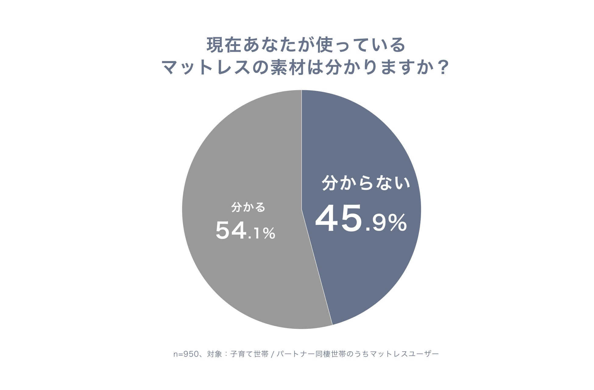 しかし、マットレスユーザーのうち10人に4人を超える45.9%は自分の使用しているマットレスの種類を把握していないという結果となり、「マットレス選び」についての意識の低さが明らかになりました。