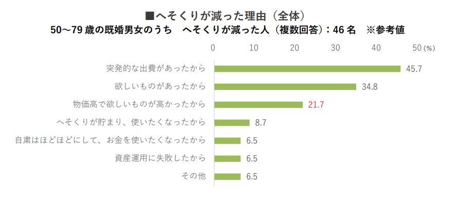 へそくり金額は昨年よりも減少し、物価高の影響もみられる