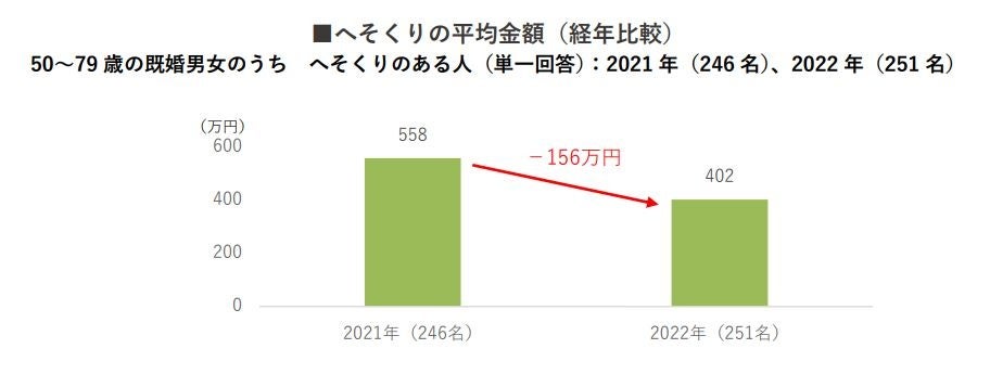 へそくりの平均金額は402万円、物価高の影響か、昨年よりも減少